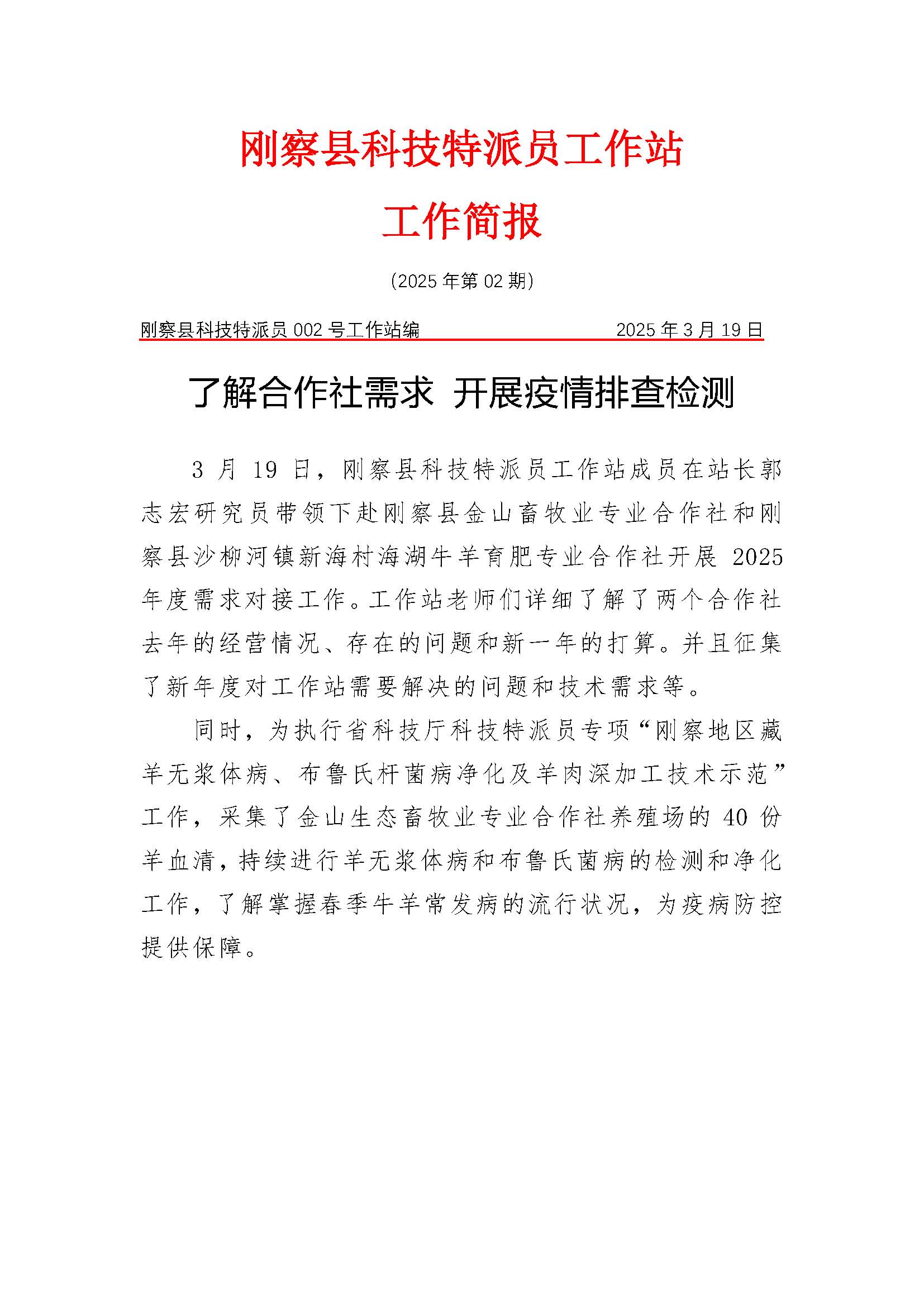 了解合作社需求 开展疫情排查检测 — 刚察县科技特派员002号工作站