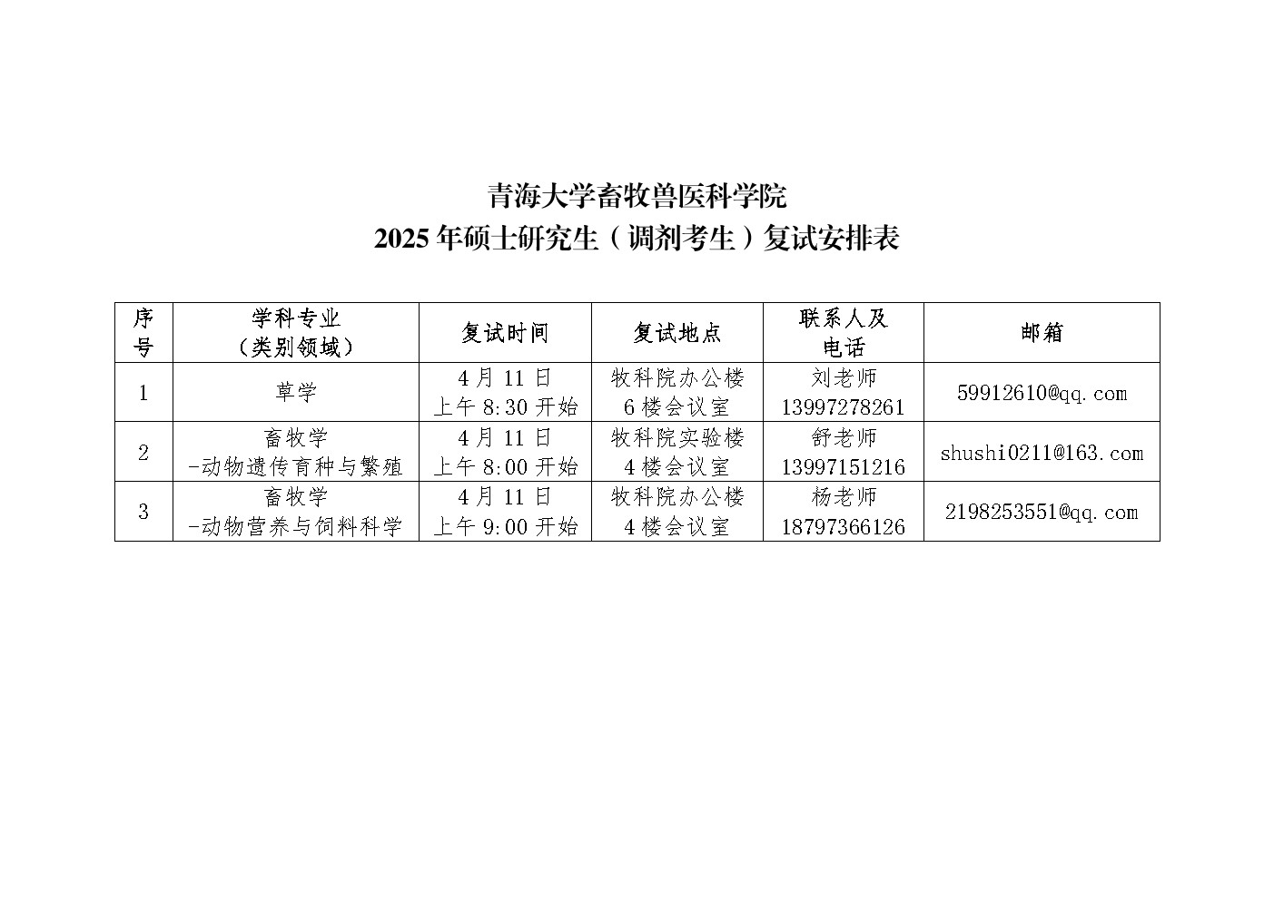 williamhill威廉希尔官网畜牧兽医科学院 2025年硕士研究生(调剂考生)复试安排表